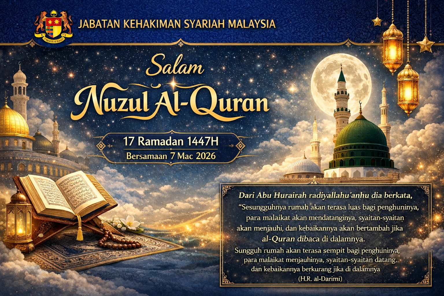 𝐊𝐔𝐀𝐋𝐀 𝐋𝐔𝐌𝐏𝐔𝐑, 𝟐𝟐 𝐅𝐞𝐛𝐫𝐮𝐚𝐫𝐢 — Jabatan Kehakiman Syariah Malaysia (JKSM) hari ini hadir memeriahkan Majlis Berbuka Puasa bersama YAB Perdana Menteri dan Peluncuran Rakan Masjid X Rakan Muda Ramadan yang berlangsung penuh ukhuwah di Masjid Wilayah Persekutuan Kuala Lumpur petang